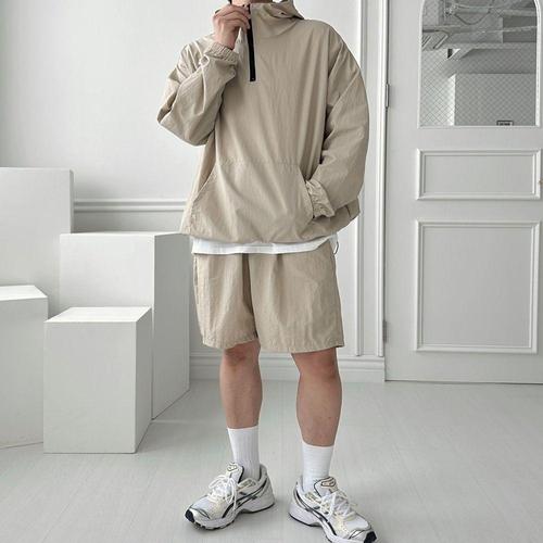 [셀럽하우스]남성 RKKE0273 후드 아노락 바람막이 긴팔 반바지 셋업 데일리
