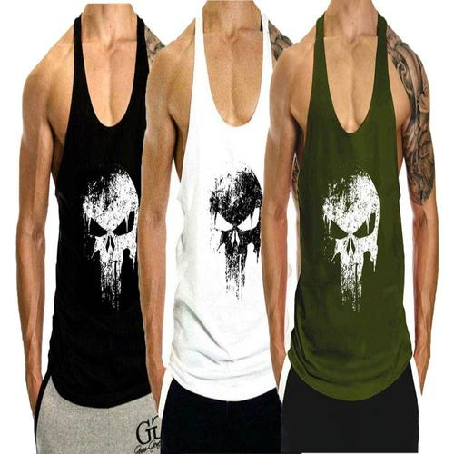 [셀럽하우스]남자 XZZQ0292 머슬핏 해골 민소매 나시티 헬창 딥 나시 짐웨어