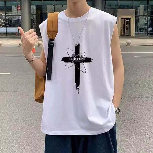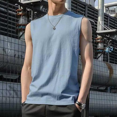 1팩 사계절 남성용 면 조커 조끼 십대 심플핏 스포츠 피트니스 티셔츠 중년 캐주얼 민소매 셔츠