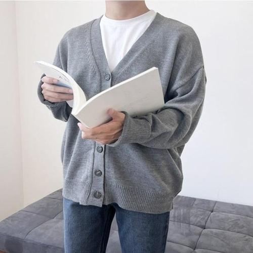 [프로셀러] 남성 봄 가을 간절기 브이넥 니트가디건 오버핏카디건
