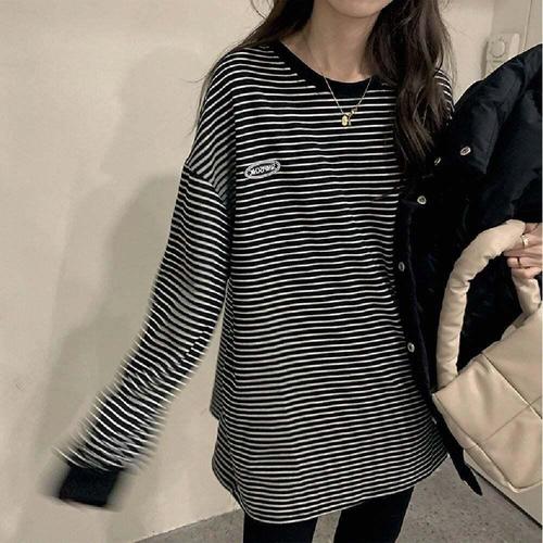 [오너클랜]인기상품 티셔츠 스트라이프 단가라 맨투맨 루즈핏 남녀 긴팔 [WFLNMFT_260205]