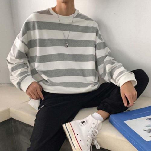 [셀럽하우스]남성 KEEK6013 맨투맨 줄무늬 포인트 오버핏 니트 티셔츠