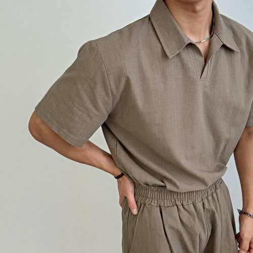 데일리 뉴테크 린넨 오픈카라 반팔셔츠