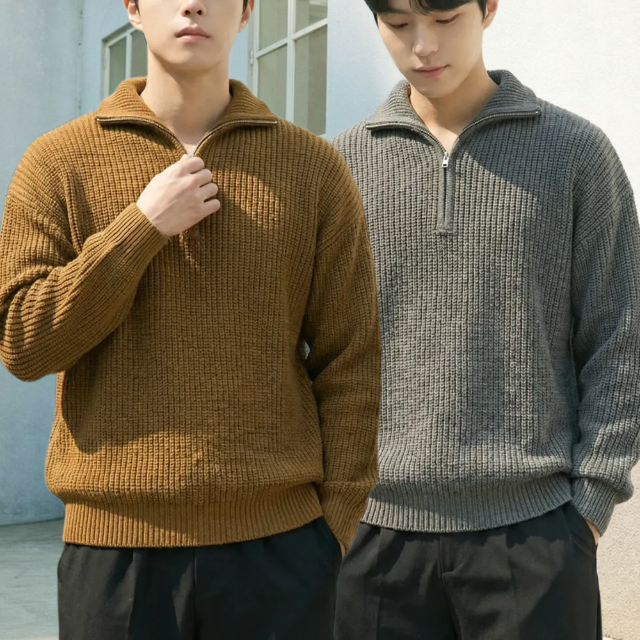 남성 반집업 니트 스웨터 터틀넥 부드러운 기모 남자 겨울 하프집업 폴라 니트티 긴팔 빅사이즈
