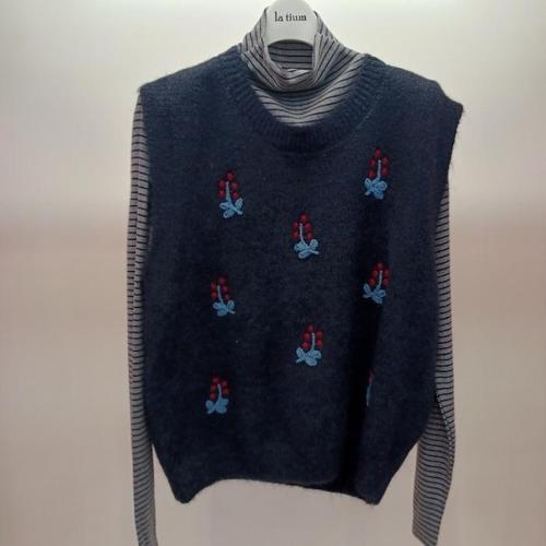 [라티움]Latium HC06 스판 단가라 반목폴라 티 탈부착 자수 라운드 니트조끼 세트 T2543se05 (43264744)