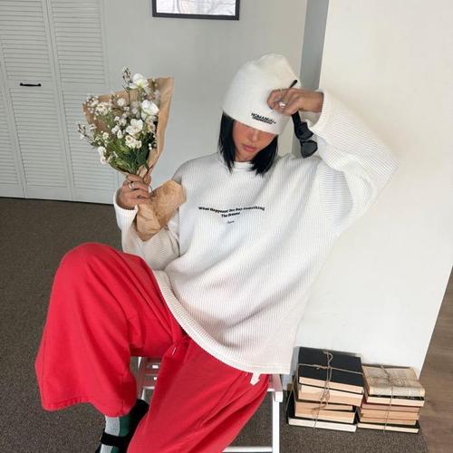 [옷자락]여자 남자 개강룩 봄옷 레터링 라운드넥 골지 맨투맨