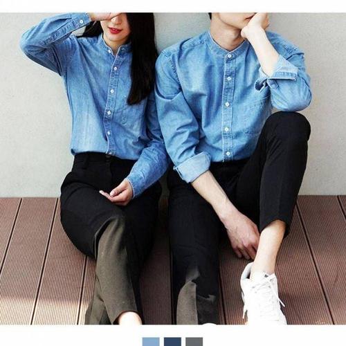 HANYO 남성 생 데님 워싱 데일리 오버핏 캐주얼 긴팔 셔츠 청남방