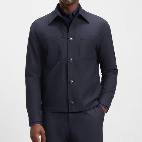 [휴고보스]휴고보스 남성 스트레치 네이비 오버셔츠 자켓 스트레치 릴렉스핏 2025FW