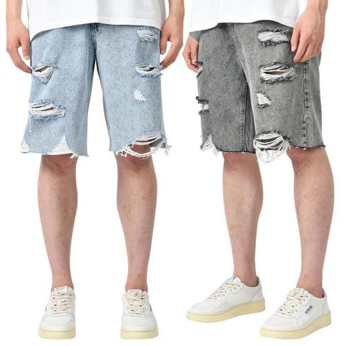 [에이치플러스몰]여름 인기 데미지 남성 남자 감성 연청 반바지 청바지