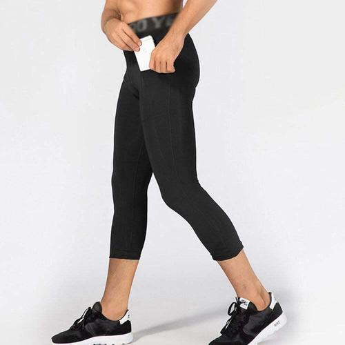 남성용 고탄력 7부 크롭 주머니 스포츠 레깅스