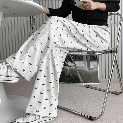 [JHQS8GGB_4B]와이드팬츠 리본패턴 스위트홈웨어 편한바지