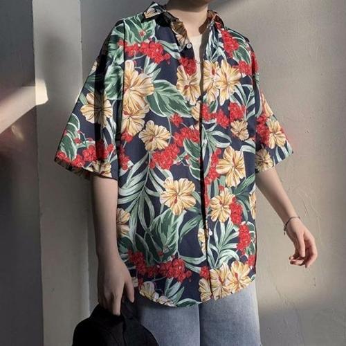 남성 휴가패션 휴양지 하와이안셔츠 꽃무늬 여름 반팔 5색