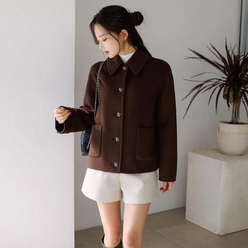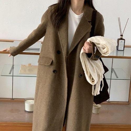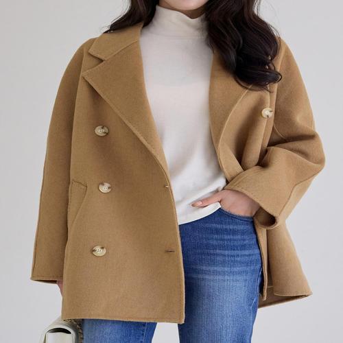 여성 모직 코트 하프 양모 루즈핏 롱 더플 핸드메이드 숏 울