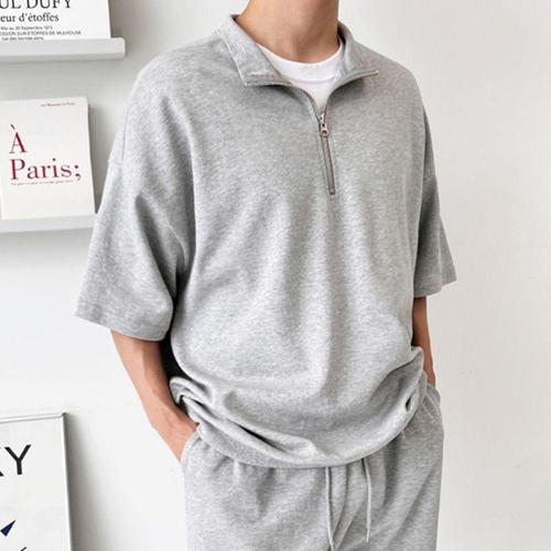 [셀럽하우스]남자 NFWA6864 반목 반집업 7부 반팔 면 오버핏