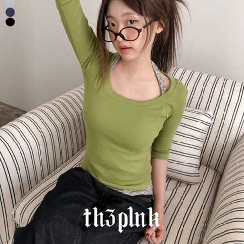 더핑크 / 레비 슬림핏 백 절개 7부 반팔티