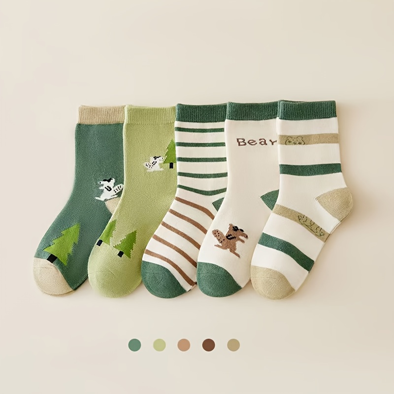 TEMU 귀여운 동물 중목 양말 5켤레 세트, 남아 여아용 두꺼운 가을/겨울 아동용 양말, 부드럽고 편안한 보온 방한 의류, 할로윈/크리스마스 선물