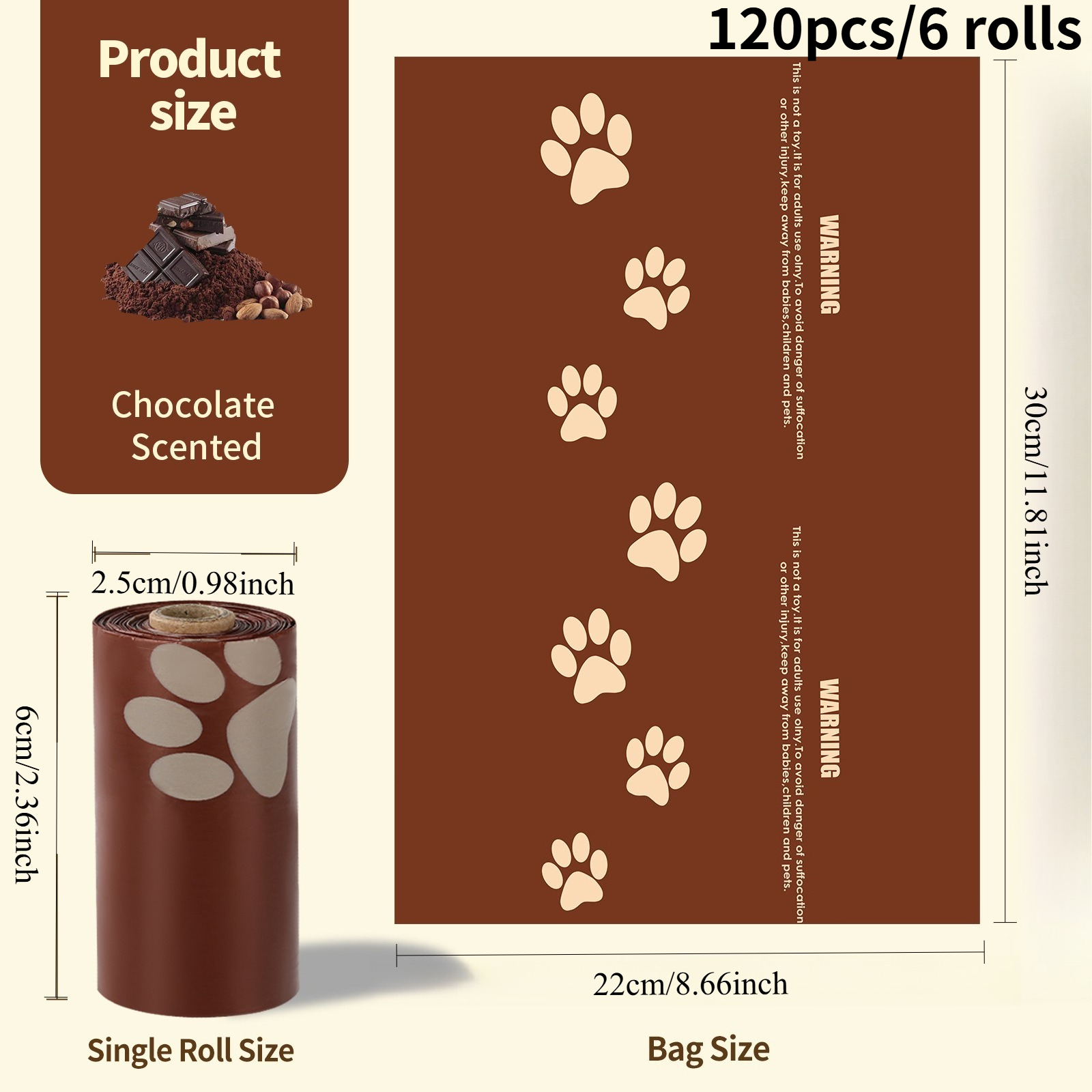 TEMU 120개/6롤 초특두꺼움 누수 방지 반려동물 배변봉투 - 귀여운 발바닥 프린트 디자인의 세척이 쉬운 폴리에틸렌 소재, 강아지와 새끼고양이에게 적합 - 휴지통 디스펜서와 호환, 알림 스티커가 있는 내구성 있는 일회용 반려동물 똥봉투, 두꺼워진 커피향 강아지 배변봉투, 휴대용 청소용 쓰레기봉투
