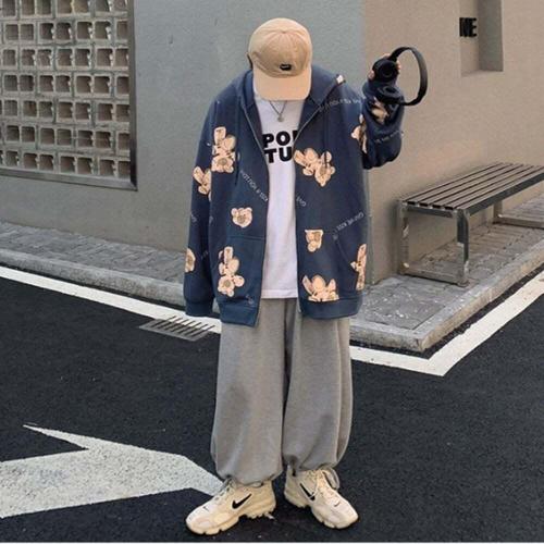 [셀럽하우스]남여공용 ICXE9785 귀염 곰돌이 후드집업 커플후드집업 오버핏
