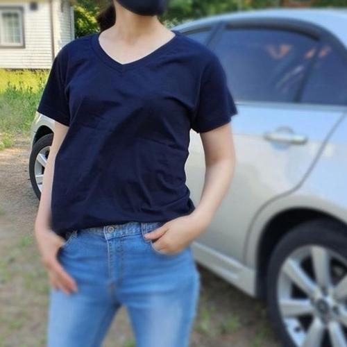 [엄지척]순한 무지 면 기본 반팔 브이넥 티셔츠 남여 네이비_19557115_667501