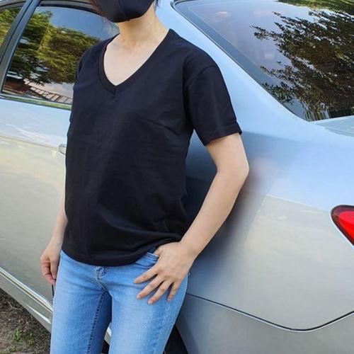 [OFJ24550]순한 무지 면 기본 반팔 브이넥 남여 블랙