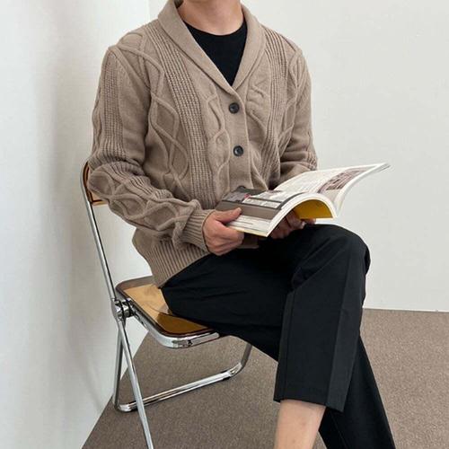 [셀럽하우스]키밍 LTEY6028 남성 숄카라 니트 가디건 베이직 코트 꽈배기