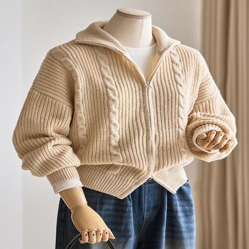 [커스텀에이블]하이넥 양꽈배기 집업 가디건_T2510CD064D