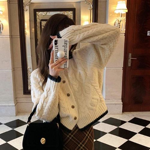 [셀럽하우스]WS RXBQ3983 짜임3컬러 꽈배기 가디건 니트 CD03