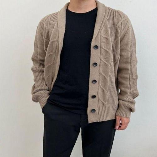 [셀럽하우스]남성 XGTV4530 학생 봄 가을 브라운 꽈배기 두꺼운 단추가디건