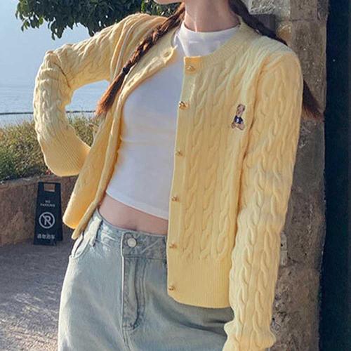 [오너클랜]인기상품 귀여운 곰돌이 자수 꽈배기 라운드 크롭 니트 가디건 [WFJXRH9_260105]