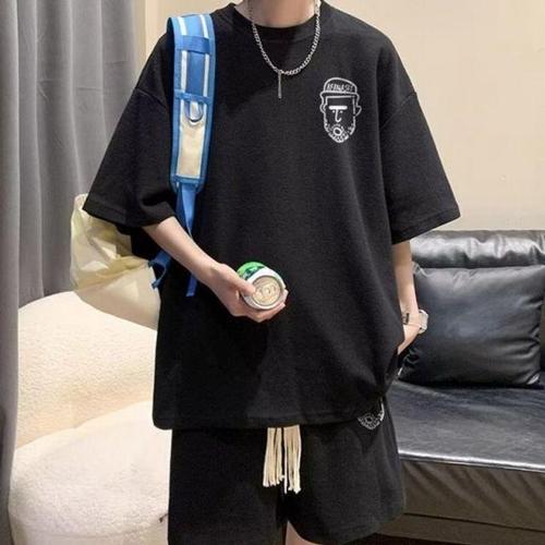 수영복 남성용 큰 사이즈 상하 세트 래시가드 2종 반팔티셔츠 수영바지 신축성 속건성 수륙 양용 여름 고등학생 중학생 성인용 XL 블랙
