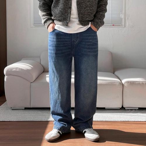 1+1 남자 청바지 빅사이즈 세미 와이드 데님 팬츠 (6477-2)