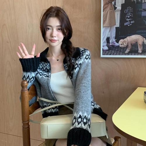 미르누아 프로즌 니트 집업 카라 긴팔 가디건