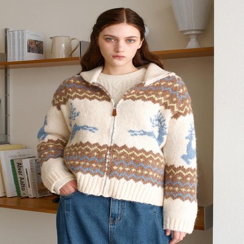 [위시드]노르딕 카라 니트 울 집업 가디건 (WICDCD042)