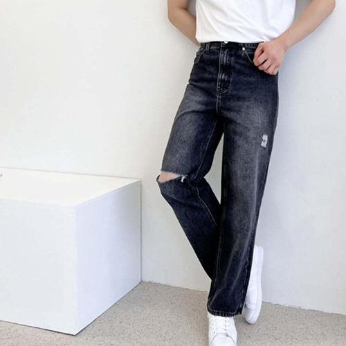 [셀럽하우스]SIN AFZA1393 1010M 남자 와이드레그 찢청데님 여성 일자청바지