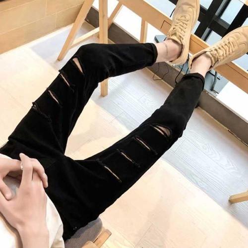 [셀럽하우스]찢청 GFLQ6266 깔끔 가벼운 남자 스키니 블랙진 컷팅 청바지