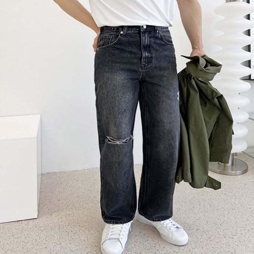 남자 찢청 디스트로이드 와이드 청바지