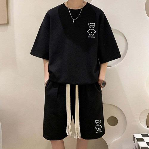 [오너클랜]인기상품 남자 오버핏 유니크 밴딩 스트링 반팔반바지 코디세트 [WEF4B9A_260203]