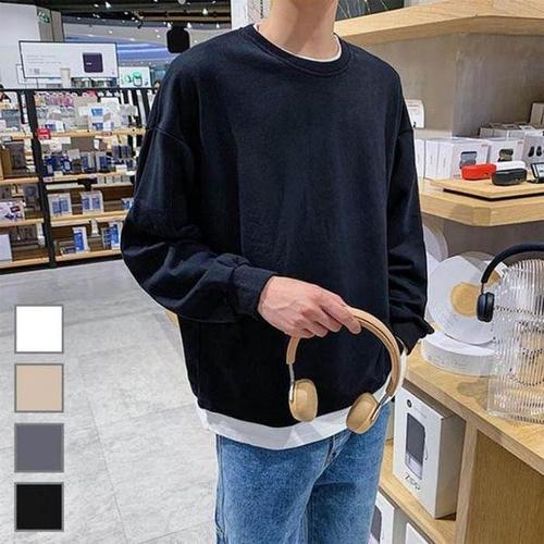 [셀러허브_여성트랜드패션]4컬러 레이어드 라운드넥 긴팔티 남자가을옷 무지 남자티셔츠 남자 베이직