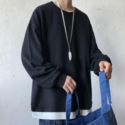 [셀러허브_여성트랜드패션]두겹 남자가을옷 남성티셔츠 라운드넥 남자 레이어드 페이크 남자티셔츠