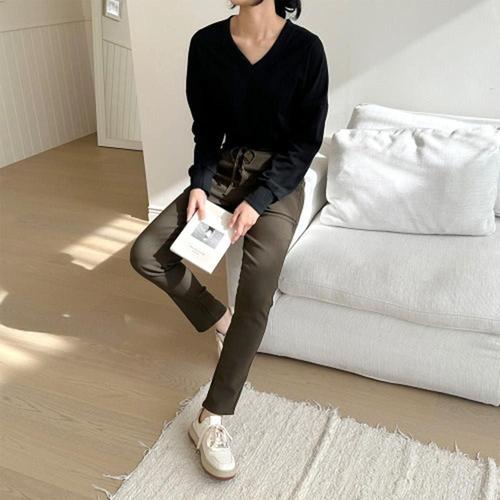 겨울 기모 신상 배기 밴딩바지 면바지 일자 세미 밴딩 WFKXXDR