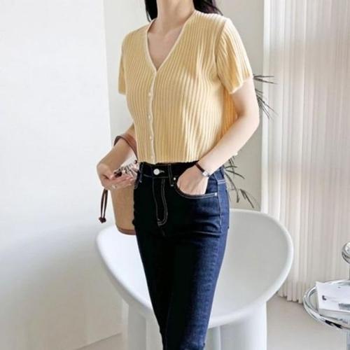 [엄지척]니트가디건 패션 반팔 골지 데일리 브이넥 크롭 여름_19799261_667501