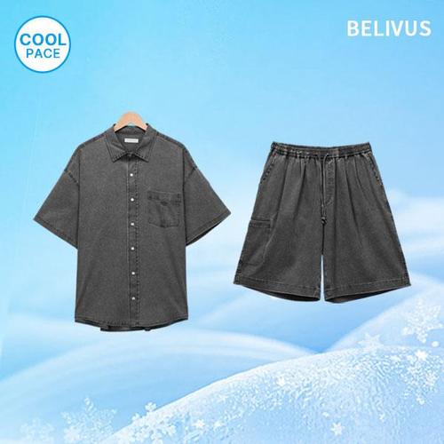 빌리버스 남자 냉감 반팔 데님셔츠 밴딩 청바지 셋업 BYHT008