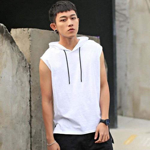[셀럽하우스]남자 ZZRV9435 나시티 무지 민소매 헬스 후드 레이어드 2색