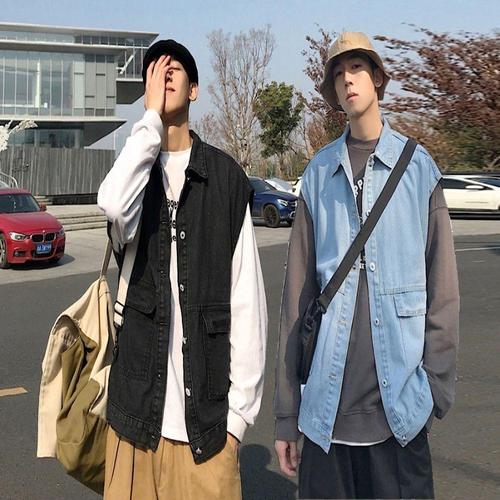 [셀럽하우스]남성 XTNJ6883 오버핏 데님조끼 민소매 아우터 레이어드 청조끼