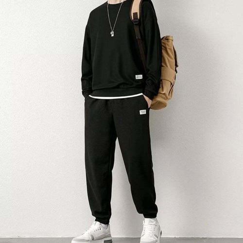 셋업 남성 레이어드느낌 조거팬츠 깔끔스타일 맨투맨 블랙 PWFFL794