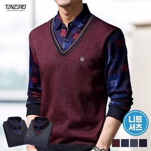 [텐제로]남성 봄시즌 페이크 레이어드 니트셔츠 이너티 데일리룩 남방셔츠 Bon-2673