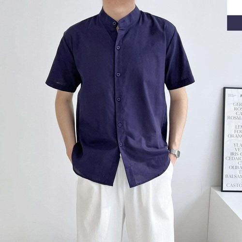 [셀럽하우스]남성 AABD6688 시원한 린넨 반팔셔츠 네크라인 여름 남방