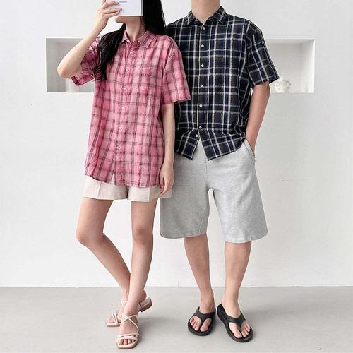 [오너클랜]인기상품 볼카 남녀공용 린넨 체크 반팔셔츠 여름남방 [WFLS2C9_260126]