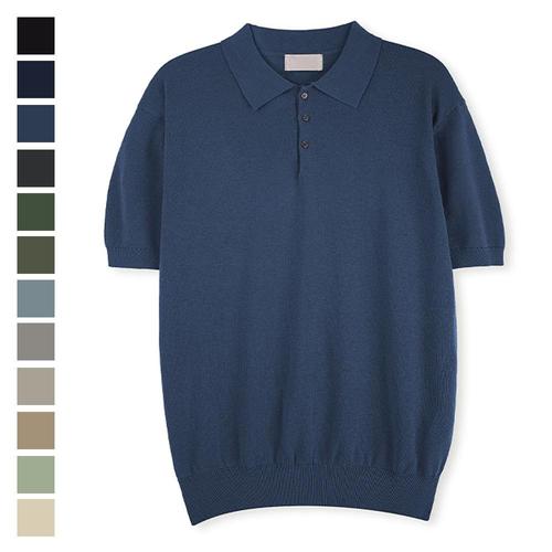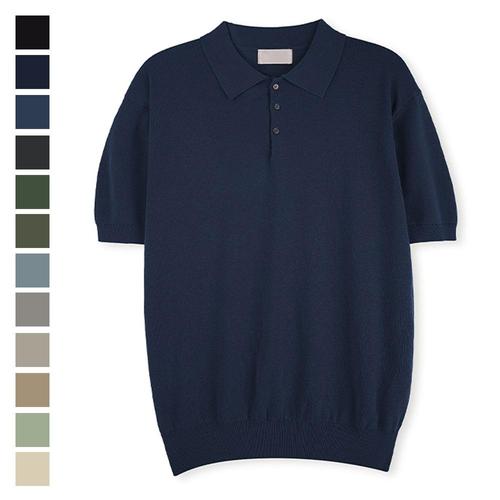 남자 여름 셀럽 버튼카라 린넨 반팔 니트티 SG-KNH-Q010-네이비