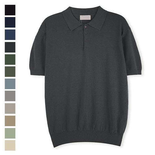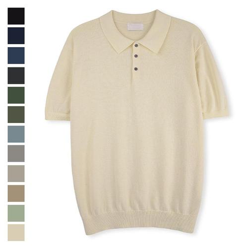 남자 여름 셀럽 버튼카라 린넨 반팔 니트티 SG-KNH-Q010-소라